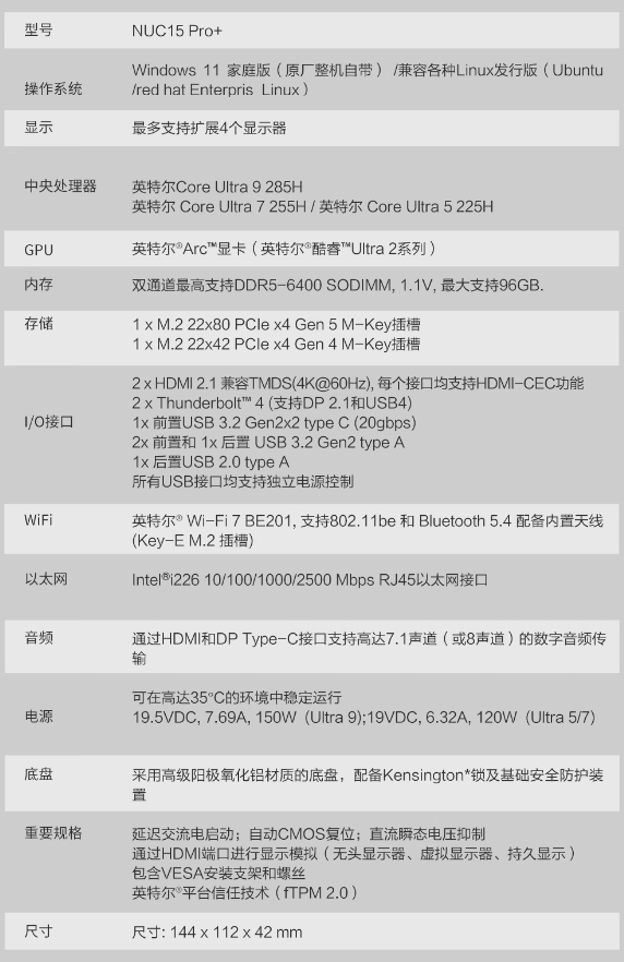 華碩NUC15 Pro mini迷你主機高性能商用AI辦公臺式機電腦 Ultra9-285H